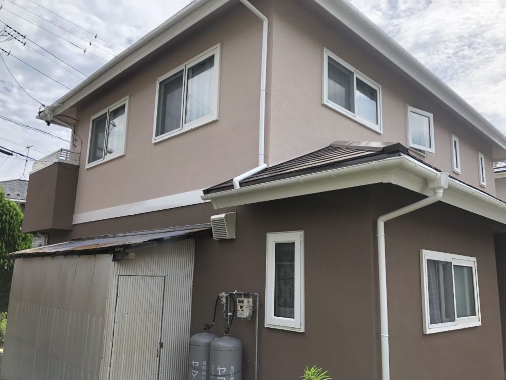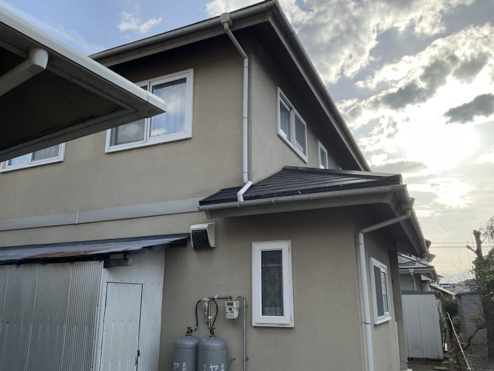 今回の外壁には、上質な質感と高い耐候性を兼ね備えた「グラナダフレッシュ」を採用いたしました。グラナダフレッシュは、微弾性機能を持ち、ひび割れに強く、長期間にわたり美しい外観を保つことができる塗料です。松本市は寒暖差が大きく紫外線も強いため、耐久性と防汚性に優れたこの塗料が最適な選択となりました。
