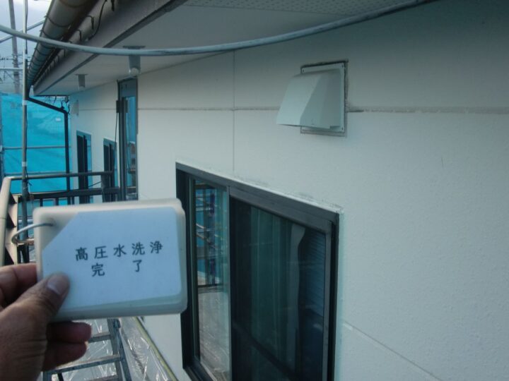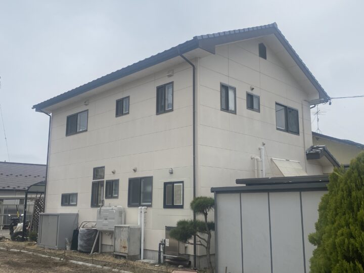施工にあたっては、下地調整を特に重視しました。どれだけ高性能な塗料を使用しても、下地処理が不十分では本来の性能は発揮されません。高圧洗浄で旧塗膜や汚れをしっかり除去し、劣化部の補修・シーリング処理を丁寧に行った上で、規定塗布量を厳守しながら三工程で仕上げています。松本市周辺で外壁塗装を行う際にも同様に、見えない部分こそ大切にする姿勢を徹底しています。