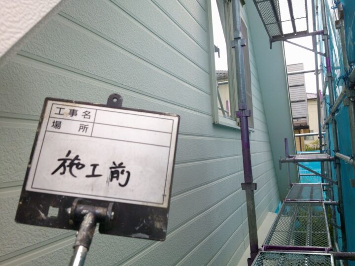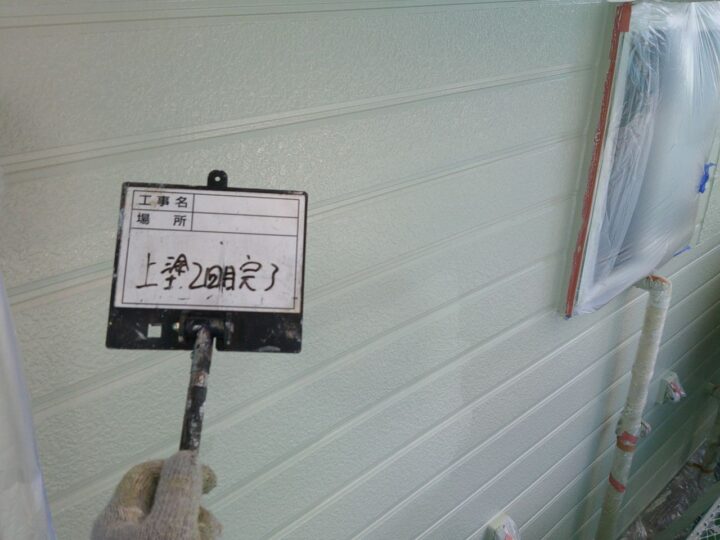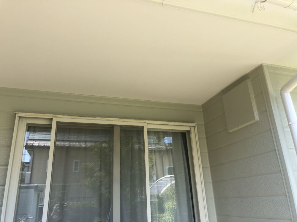 外壁材は窯業系サイディングで、経年による細かなひび割れが見られたため、外壁塗装の前に丁寧なひび割れ補修を実施しました。松本市のように冬季の凍結と融解を繰り返す地域では、ひび割れから水分が入り込むと劣化が進行しやすいため、外壁塗装前の下地処理が非常に重要です。補修後は下塗り・上塗り2回の3工程で仕上げ、耐久性を高めました。