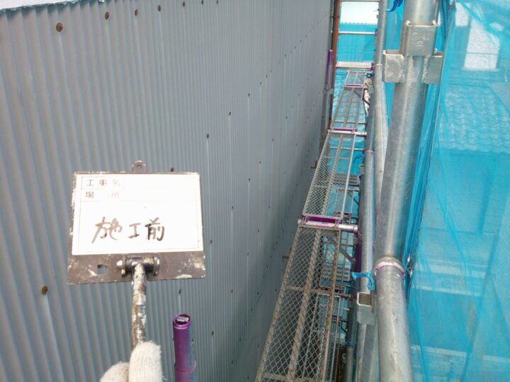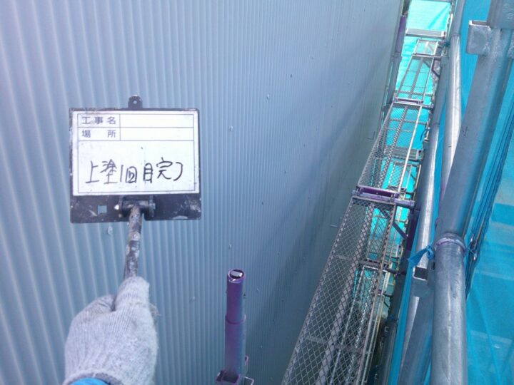 外壁には、関西ペイントの高耐候形塗料であるアレスダイナミックTOPマイルドを採用しました。この塗料はラジカル制御技術により紫外線による塗膜劣化を抑制し、松本市のように夏場の日差しが強い地域でも長期間にわたり美観を維持します。倉庫という用途上、広い外壁面を効率よく保護する必要があるため、耐候性・低汚染性・作業性のバランスを重視しました。
