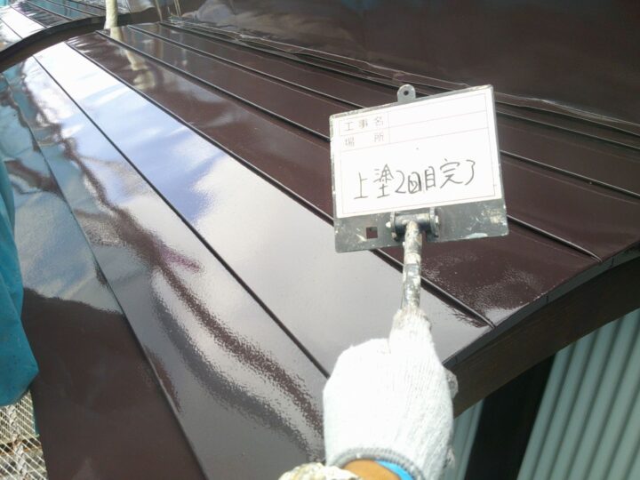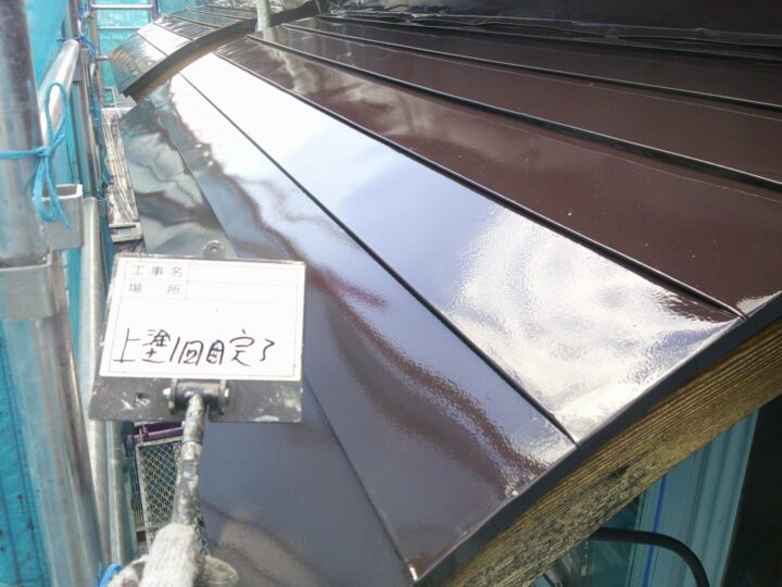 屋根には、同じく関西ペイントのアレスダイナミックルーフを使用しました。屋根は建物の中でも特に紫外線や風雪の影響を受けやすい部分です。松本市は冬季の積雪や朝晩の冷え込みが厳しい地域のため、塗膜の耐久性と密着性が重要となります。本製品は強靭な塗膜を形成し、屋根材をしっかりと保護することで、長期的なメンテナンスコストの削減にもつながります。