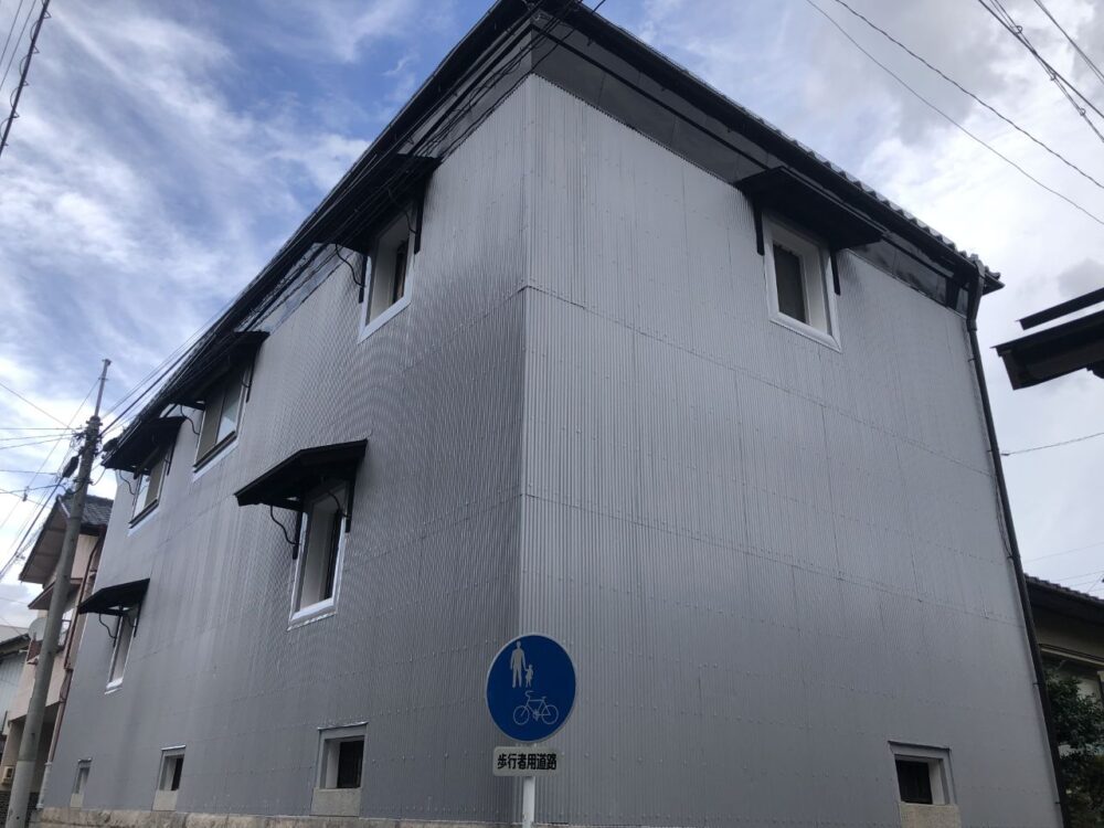 さらに一部には、調湿性や消臭性などの機能を持つアレスシックイを施工しています。漆喰の風合いを活かした仕上がりは、倉庫であっても清潔感のある外観を演出し、松本市 外壁塗装として機能性と意匠性を両立させることができました。湿度差のある松本市の気候においても、結露抑制効果が期待できます。