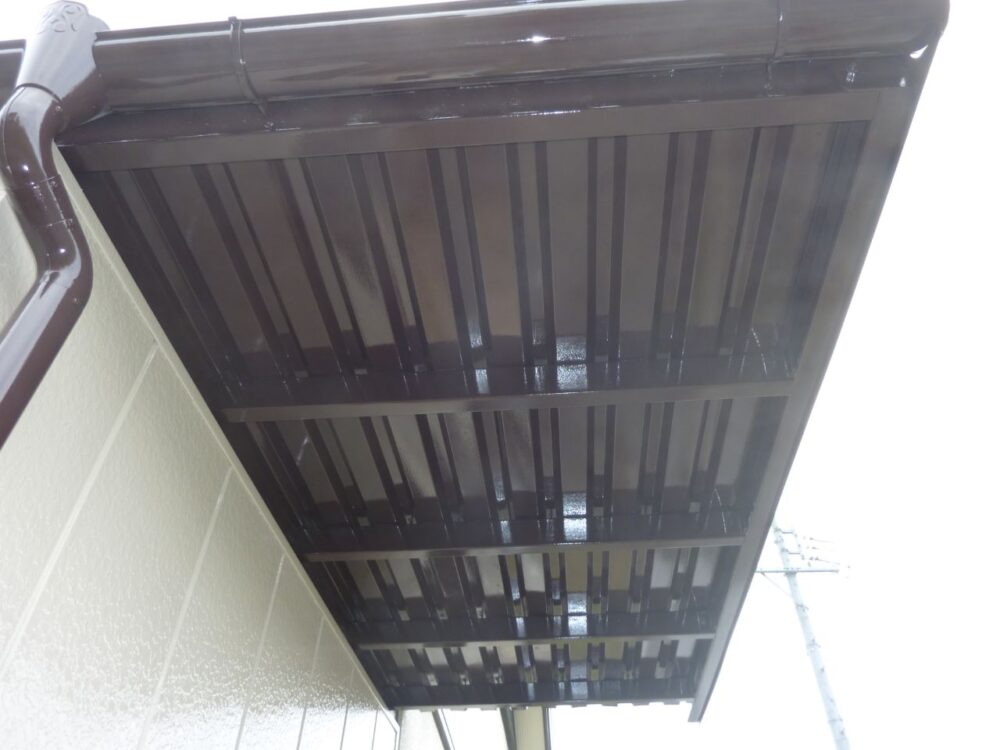 外壁には金属系サイディングが使用されており、軽量で耐震性に優れている一方、紫外線や雨風の影響により塗膜の劣化が進行しやすいという特徴があります。特に安曇野市のような紫外線量が多く、気温差による膨張収縮が繰り返される環境では、外壁塗装の耐候性が仕上がりの寿命を左右します。そこで今回の安曇野市の外壁塗装では「アレスダイナミックTOP」を採用しました。この塗料はラジカル制御技術により塗膜劣化の原因を抑制し、長期間にわたり外壁の美観と保護性能を維持します。安曇野市での外壁塗装において、非常に信頼性の高い塗料といえます。